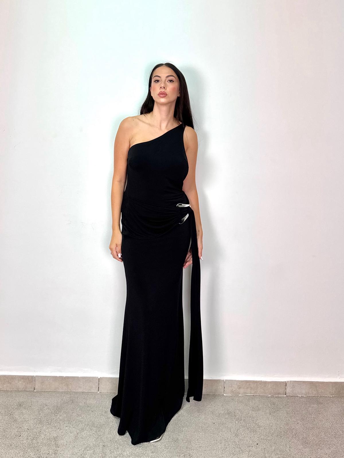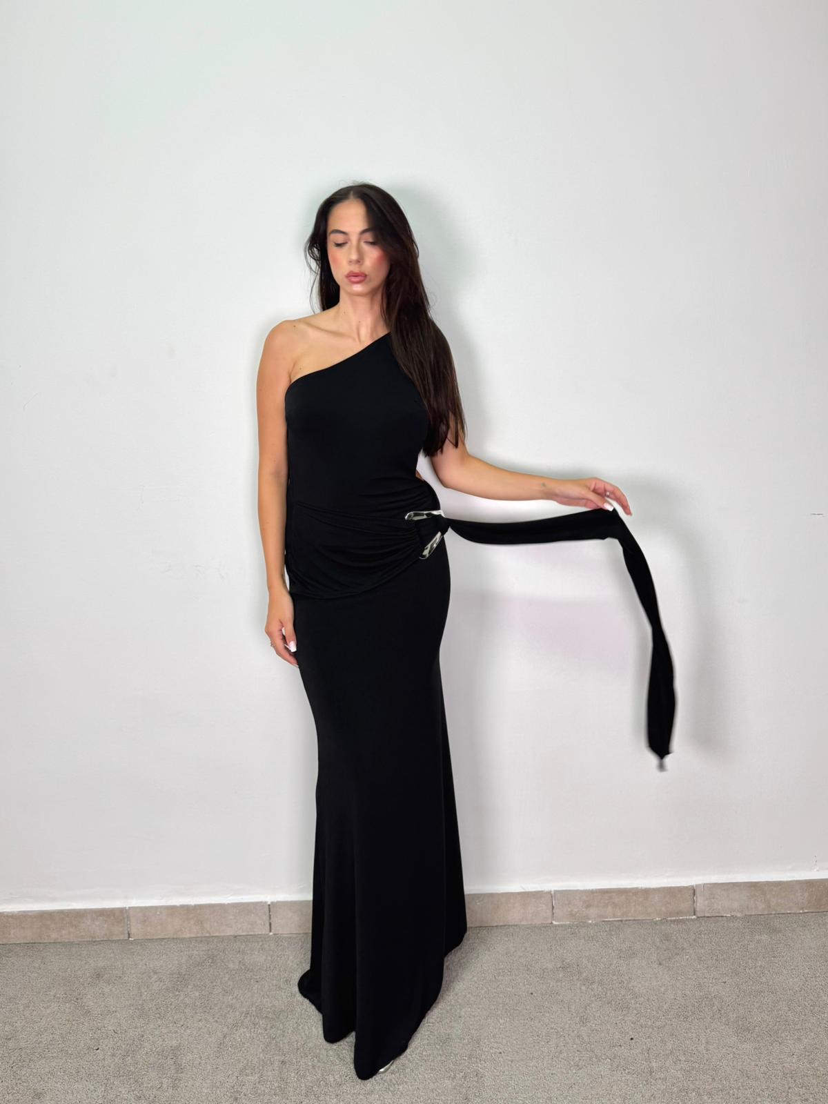 Un abito elegante e sensuale che conquista al primo sguardo. La linea monospalla unisce raffinatezza e modernità, mentre il dettaglio gioiello sul fianco e la schiena scoperta regalano un tocco audace e femminile. Perfetto per serate di gala, eventi esclusivi e occasioni speciali.