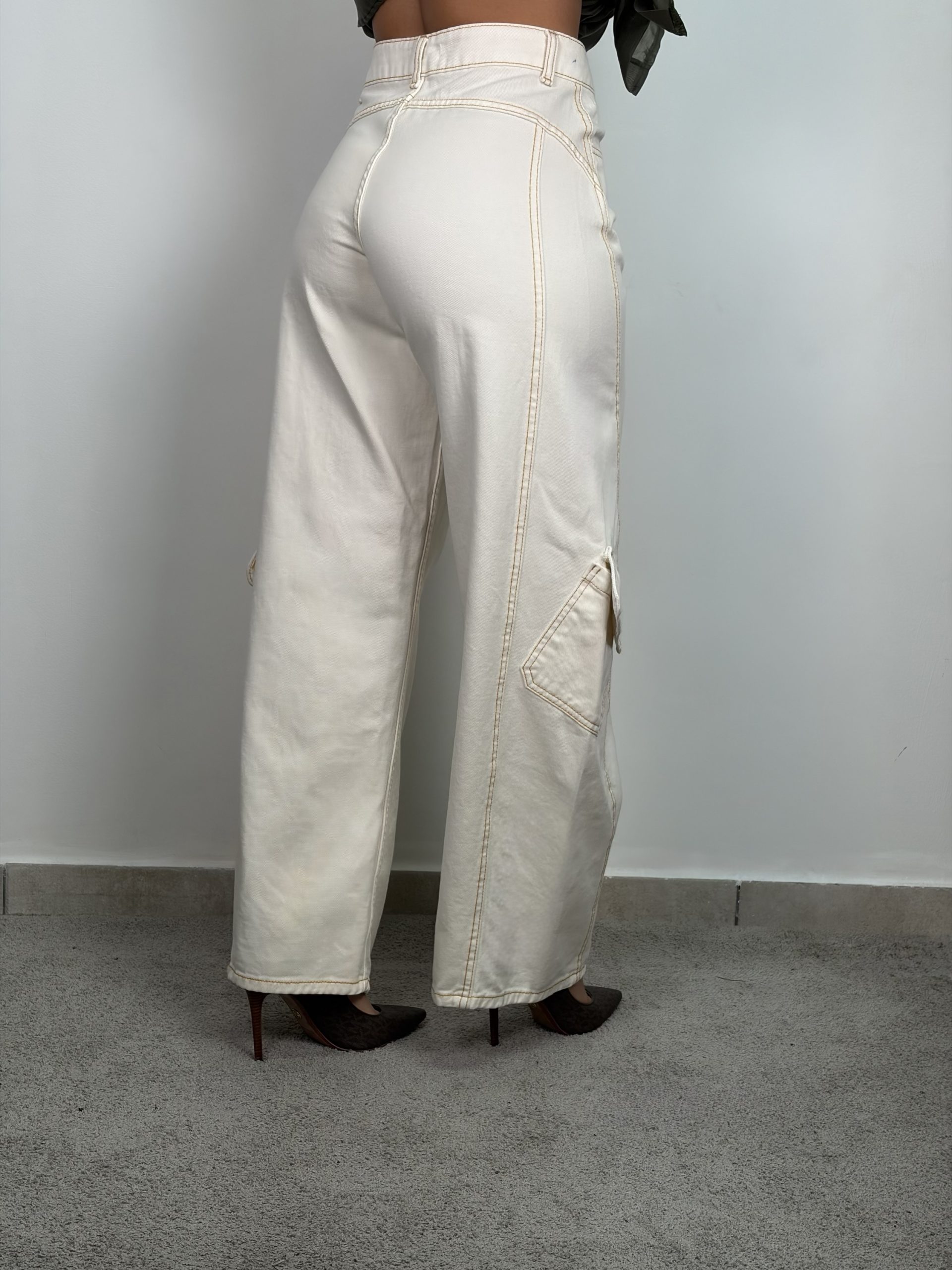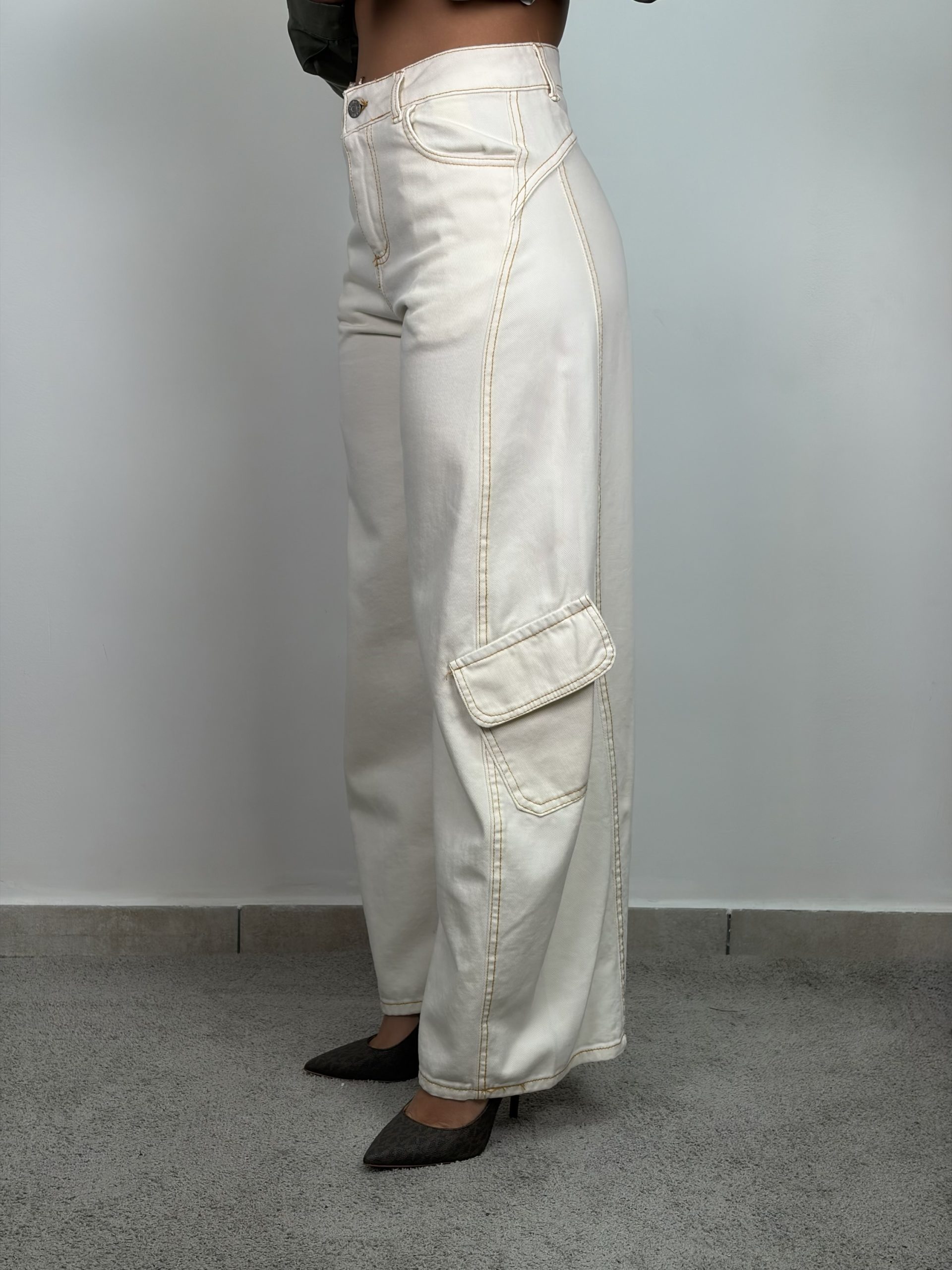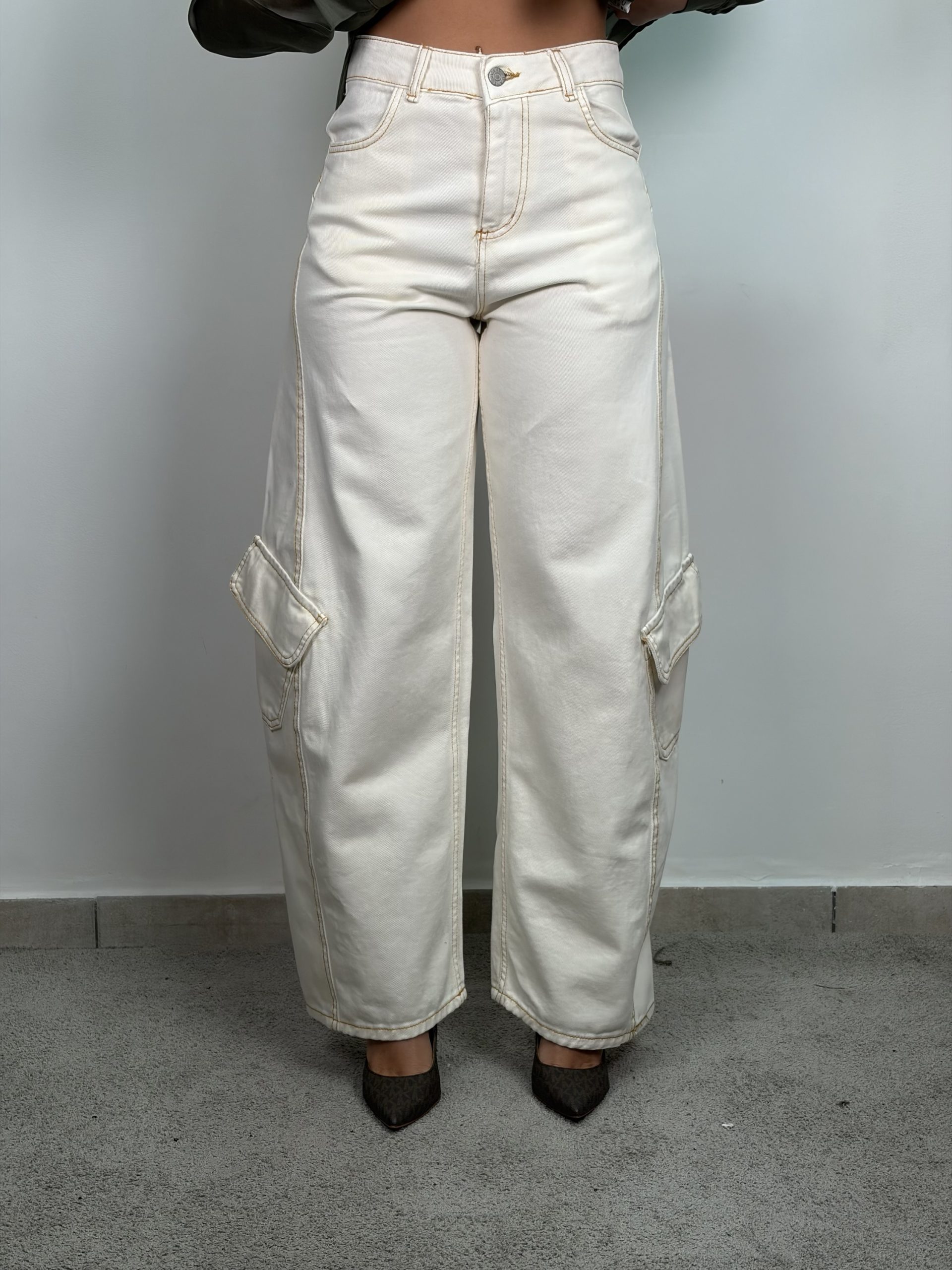 Deciso, contemporaneo e irresistibilmente versatile: il Pantalone Cargo Milk è il modello che ridefinisce il concetto di casual-chic. Realizzato in denim morbido color latte, presenta una linea wide essenziale che slancia la figura senza rinunciare al comfort.