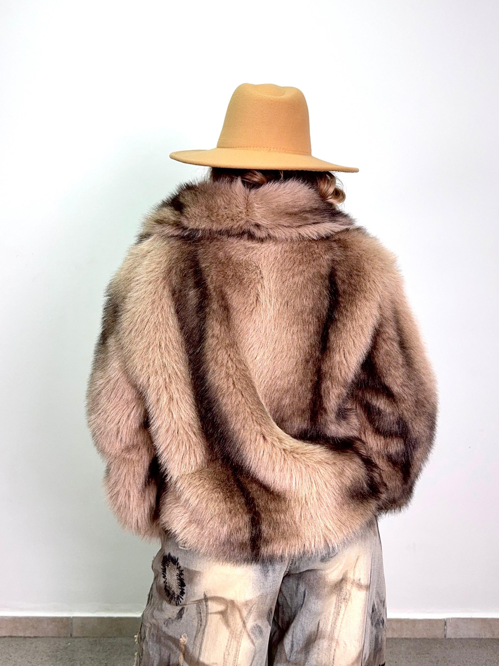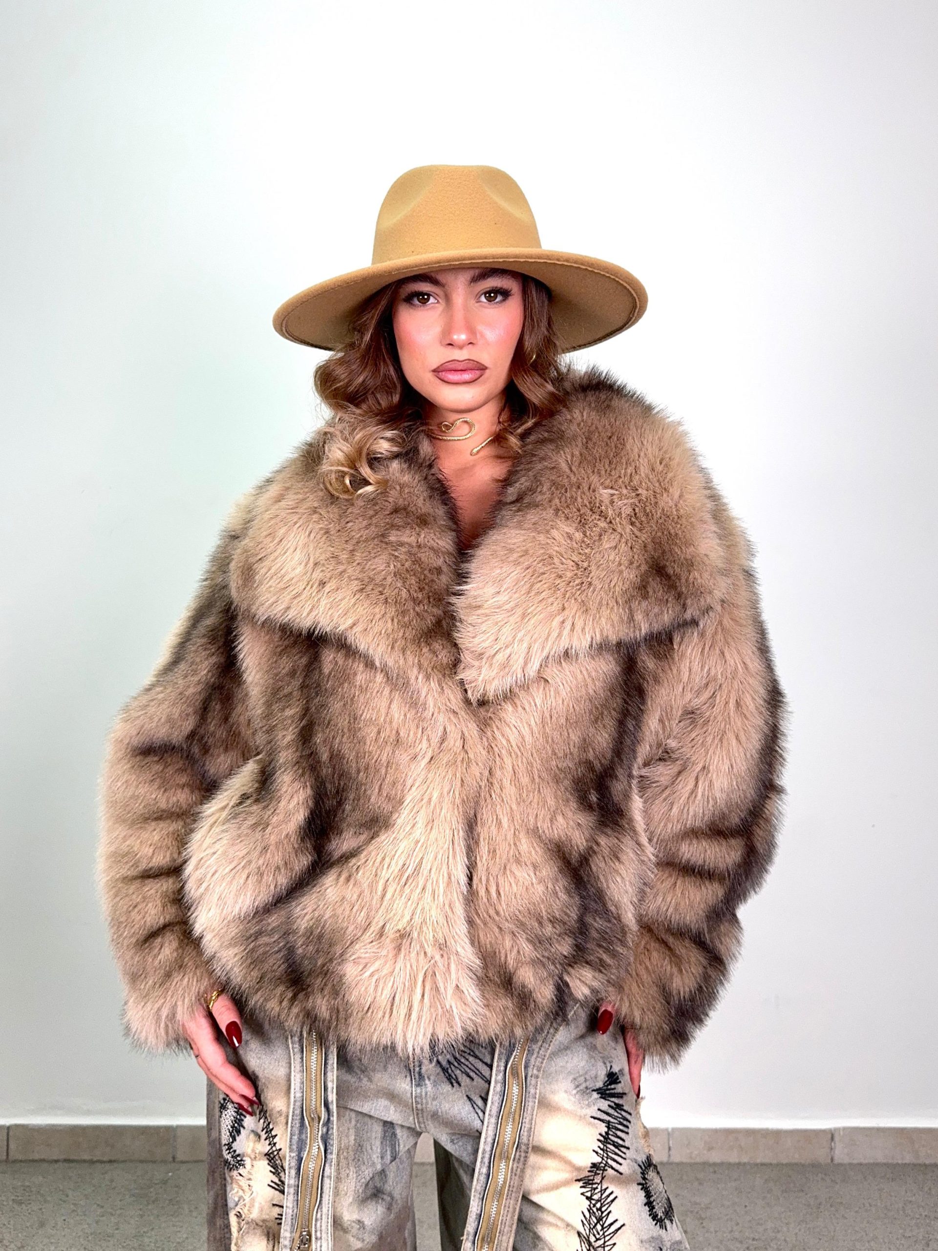 La Pelliccia Savage incarna la potenza della femminilità selvaggia con un’eleganza senza tempo. Realizzata in eco-pelliccia di alta qualità, presenta una texture lussuosa e una palette calda di toni naturali che si fondono in sfumature di beige, miele e castagna. Il taglio oversize e le spalle strutturate creano una silhouette sofisticata e decisa, perfetta per chi vuole dominare la scena con naturalezza.