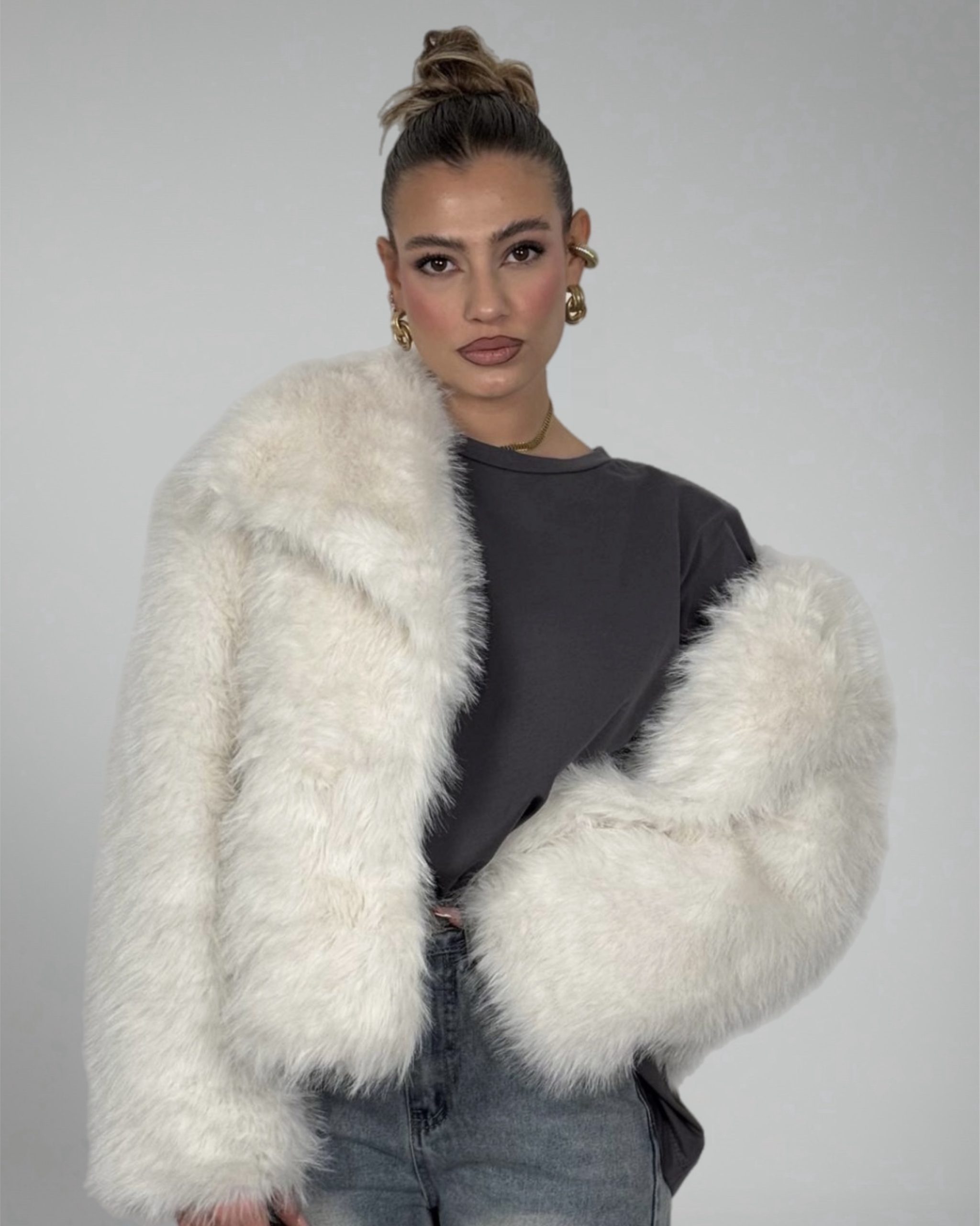 Avvolgente, elegante e incredibilmente scenografica: la Pelliccia Soft Luxe è il capo iconico che trasforma ogni look in una dichiarazione di stile. Realizzata in eco-pelliccia morbida e voluminosa, regala un effetto luxury immediato senza rinunciare al comfort.
