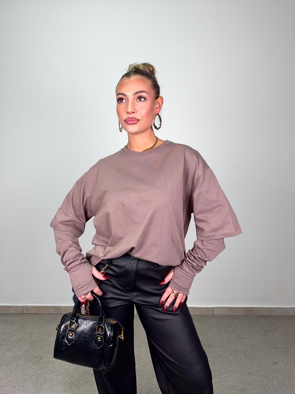Minimal ma con personalità, la T-shirt Mood è il capo essenziale che eleva ogni look. Realizzata in cotone morbido e leggermente oversize, presenta manica doppia che si adatta perfettamente a silhouette casual o più strutturate. Il colore taupe polveroso aggiunge un tocco sofisticato e contemporaneo.